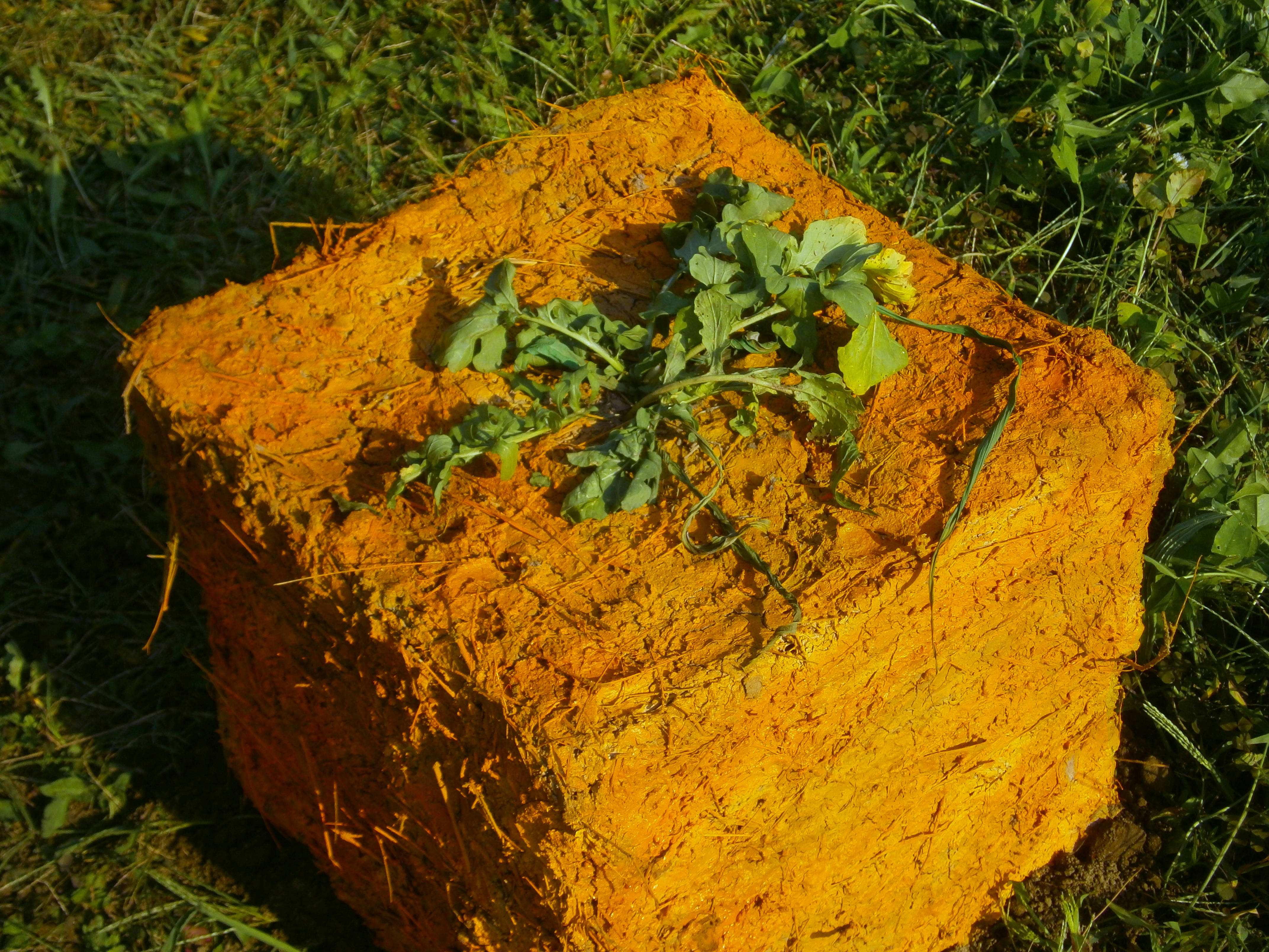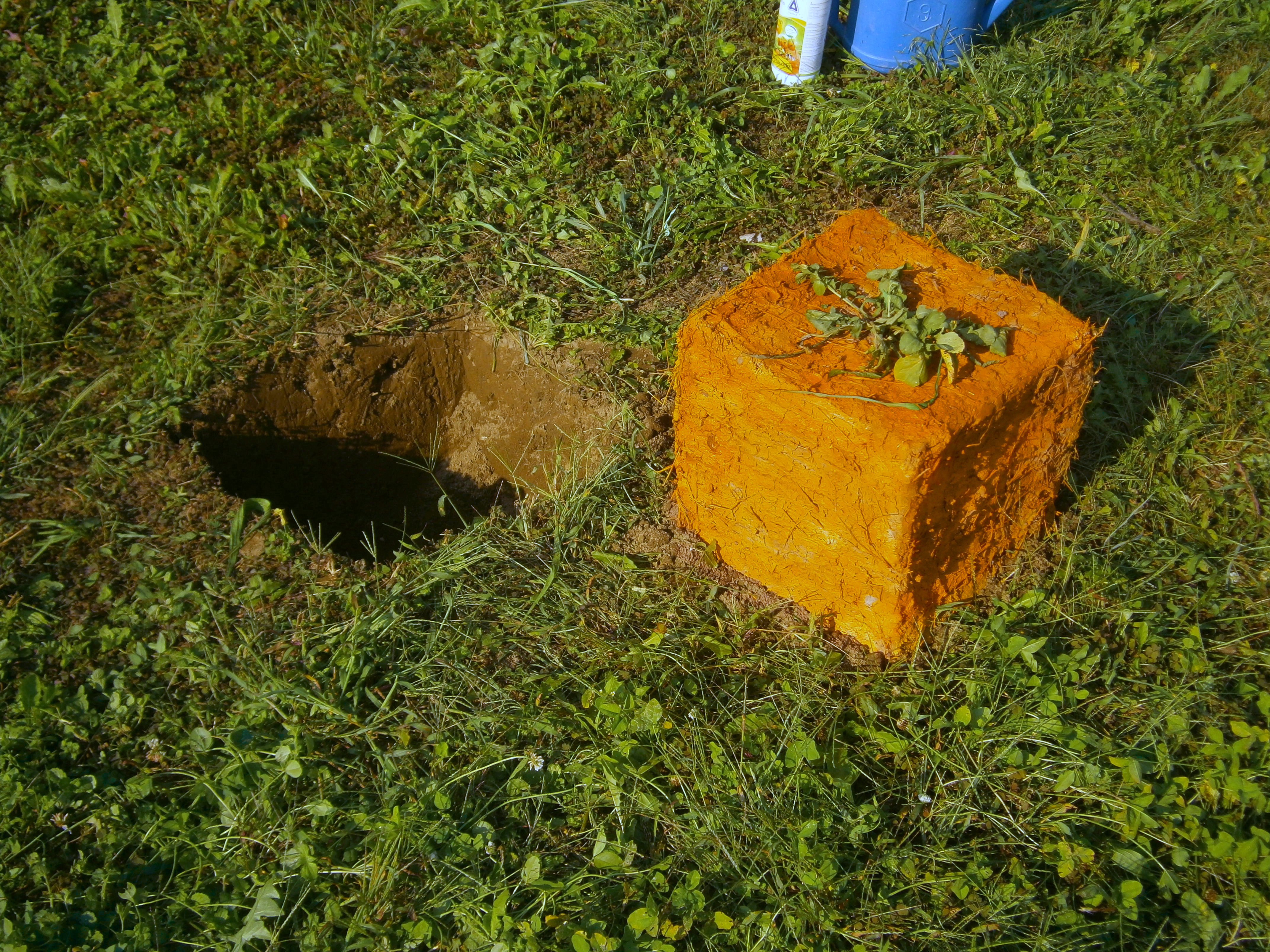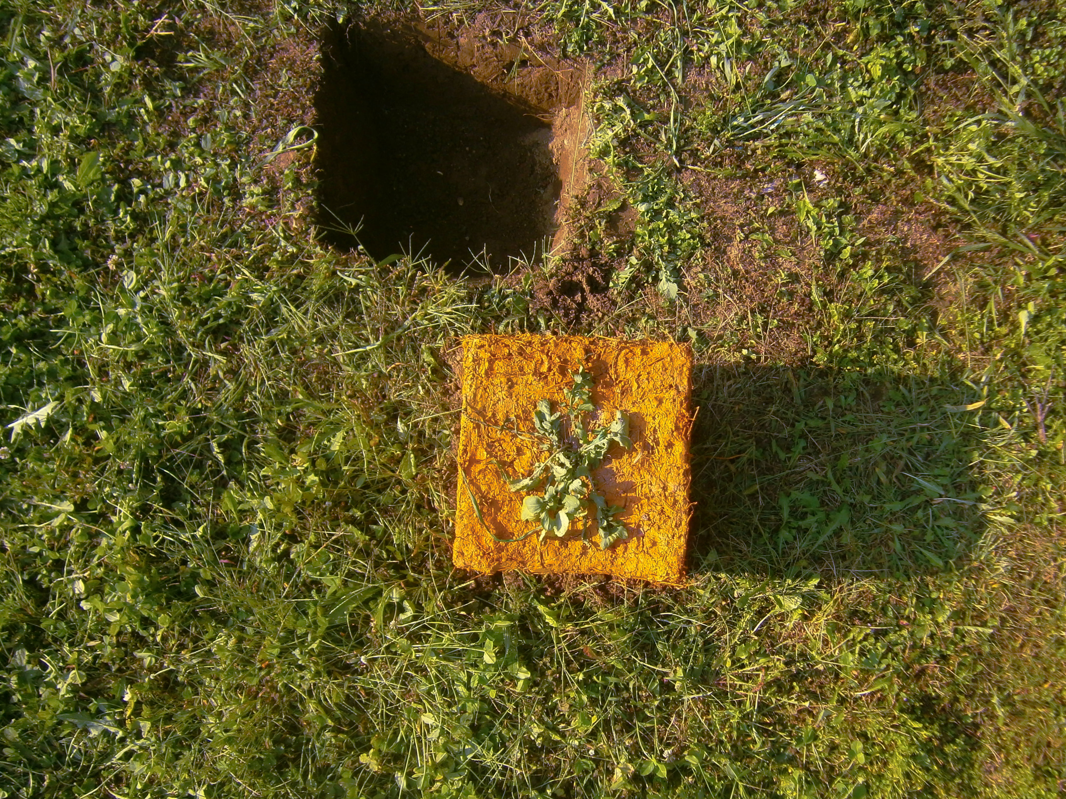 L’opera nasce come installazione nell’orto di casa mia. Un buco, la carota cubica (fatta di materiali
